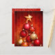 Pequenas e elegantes ornamentos de árvores de Natal vermelhas e douradas de 4,5" x 5,6" na frente desses cartões de natal e sua saudação personalizada no verso. Estas placas de saudação de barato são impressas em papel de 110 lb, disponível em 3 tamanhos. **ENVELOPES BRANCOS SÃO OPCIONAIS NA PÁGINA ENCOMENDA. Certifique-se de verificar seu pedido duas vezes antes de adicioná-lo ao seu carrinho, pois o que você vê na tela é o que será impresso. O Serviço de Design ao Vivo pode ajudá-lo com seu layout de design, se necessário.