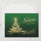 Este elegante e barato tom verde e dourado falso "Saudações da Época" de Natal ou de Natal tem um fundo verde profundo com uma árvore de luz de Natal ou Feriado iluminada, estrelas, garland de fita e flocos de neve com uma grande cobertura de árvore de luz estelar. O verso tem rolhas de ouro ornamentado que se coordenam com a tipografia vintage na frente. Este seria um cartão perfeito para uma empresa, empresa ou empresa enviar em massa para seus clientes e/ou funcionários. Se você precisar de itens correspondentes, como envelope, postagem ou selo de envelope, envie um email para niteowlstudio@gmail.com com sua solicitação.
