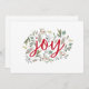 Cartão de Feriado de Script Vermelho Floral de Joy