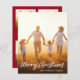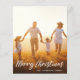 Cartão de cartões de natal simples e elegante, de fácil orçamento, com a sua fotografia com "Feliz Natal" numa cobertura branca. Personalize com seu nome na tipografia branca moderna. No verso, adicione 3 fotos adicionais e seu cartões de natal.