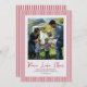 Celebre a magia da estação com este encantador cartão com fotos de férias listrado vermelho, com a mensagem sincera "Paz, Amor, Saúde." Com bordas e espaço inspirados em canas doces para a sua foto familiar favorita, este cartão é uma forma festiva de enviar desejos calorosos a pessoas amadas perto e longe. A mensagem manuscrita de script "Peace, Love, Cheer", a foto da família, os nomes e a mensagem são totalmente personalizáveis. Quer estejamos a celebrar novos começos ou a honrar tradições doces, este cartão personalizado é um bom guardião para amigos e familiares.