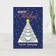 Esta árvore de natal é feita de raquetes de tênis, revestida com uma bola de tênis amarela. O fundo é azul escuro, com uma dispersão de neve caindo. Adicione seu nome ou outro texto na frente para personalizar o design. A mensagem dentro também é editável, ou você pode usar o padrão "Desejando a você um cheio da temporada de feriados de amor, alegria e felicidade". Só por diversão, há mais um dentro de bola de tênis.