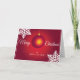 Feliz cartão de Natal e Feliz ano novo com vidro vermelho brilhando bola de massa em vermelho escuro com flocos de neve grandes