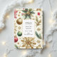 Envie desejos calorosos e elegantes com este luxuoso cartão vermelho, verde e de férias de ouro. Apresentando flocos de neve de ouro bonito, elementos florais de aquarela, detalhes do pinheiro e um padrão geométrico moderno de abstrato com tipografia na moda, este sofisticado design de inverno traz encanto eterno às suas saudações festivas.