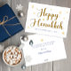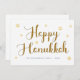 Cartão de Feriado Dourado de Script Feliz Hanukkah