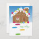 Casas de pão-de-gengibre que são doces e completamente decoradas com doces e gelo irão apelar visualmente num cartão.