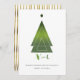 Cartão verde de Natal moderno e festivo, geométrico, com faixas de cor dourada no verso do cartão Personalizar com saudação e nome para a época de Natal