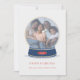 Um globo de neve simples, mas detalhado, com uma foto de solteiro no centro. Dustado com neve de folha de ouro falso, bordas escaldadas em querido e tipografia limpa.
