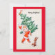 Red Cute Retro Retro Natal vintage Rapariga Segurando Cartão De Feriado De Árvore.