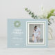 Celebrar a época de férias com estes sotaques elegantes, azuis e de água-coloridos. Este design apresenta um monograma personalizado em uma faixa verde de cor d'água com a opção de adicionar sua própria mensagem pessoal e foto.