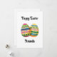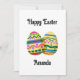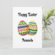 Este cartão de Páscoa elegante é uma maneira simples, porém eficaz, de enviar votos calorosos a um ente querido durante as festas. A frente apresenta dois ovos de Páscoa decorativos, adornados com padrões coloridos que evocam primavera, alegria e paz. O fundo branco adiciona um toque de leveza e torna o design atraente. A inscrição "Feliz Páscoa" em uma fonte decorativa dá ao cartão um toque clássico, e a opção de adicionar um nome o torna mais pessoal e único. Tal gesto pequeno pode fazer uma grande diferença, mostrando que você está pensando em uma pessoa específica e quer dar a ela algo feito especialmente para ela. O cartão é perfeito para ser enviado pelo correio ou incluído com um presente de Páscoa. É uma maneira simples de adicionar um toque de cor, calor e um toque pessoal à temporada de festas.