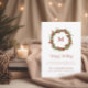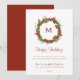 Um simples cartão de férias da família verde de Natal. Este cartão de natal apresenta uma coroa verde com pinhos cones e bagas e uma inicial no meio da coroa. Todo o texto da placa pode ser personalizado para criar o cartão de feriado perfeito para a família.