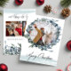Mande cumprimentos elegantes para o inverno com este Cartão de Natal Feliz e Azul de Férias. A frente mostra sua foto favorita emoldurada por uma camada de aquarela de folhas azuis e verdes, com "Feliz Natal" em um roteiro moderno embaixo. A parte traseira contém dois espaços adicionais de fotos e sua mensagem de feriado personalizada, destacada com detalhes botânicos correspondentes. Uma bela carta plana para compartilhar alegria e calor com a família e amigos nesta temporada.