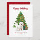 Cartão de Natal Cachorro Cachorro Cachorro Bonito com árvore de Natal e presentes. Você poderá personalizar este cartão. Você pode mudar as palavras "Feliz Natal" para o que quiser, assim como o nome da família e o nome do cachorro na parte inferior do cartão. Espero que goste deste cartão de férias adorável!