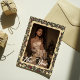 Espalhe a alegria neste feriado com o nosso cartão decorativo de festas fotográficas. design apresenta decorações de Natal no fundo em negrito elegante. A foto é colocada dentro de uma foto decorativa dourada. Personalize com sua foto e texto atrás.
