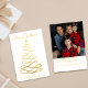 Envie suas saudações para ambos os feriados com este elegante cartão de Natal e Ano Novo duplo em uma foto. A frente apresenta um design atemporal de árvore de Natal em dourado com uma simples mensagem "Feliz Natal & Feliz Ano Novo". O verso é totalmente personalizável, com um espaço para uma foto de família querida, o nome da sua família, uma mensagem pessoal e nomes individuais. Este cartão de Natal moderno e sofisticado é a maneira perfeita de compartilhar sua alegria com amigos e familiares.