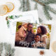 cartão de foto de Natal com script branco simples e moderno, personalize a imagem e o texto das férias.