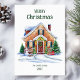 Cartão de Férias da Casa de Natal Cozy Watercolor