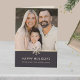 Capture a essência da união com este Cartão de Férias da Família Elegante. A frente apresenta sua querida foto familiar, maravilhosamente emoldurada por uma borda de champanhe metálica e um floco de neve cativante, evocando o encanto da estação. Uma faixa escura abaixo diz "Felizes Feriados com Desejos Quentes", espalhando alegria festiva. Dentro, a magia continua com uma mensagem personalizável expressando alegria, amor e momentos queridos, assinada com a assinatura do roteiro de sua família. As costas adicionam um pequeno floco de neve para a continuidade do design. Esta bela carta combina elegância, calor e personalização para transmitir seus cartões de natal sinceros. Compartilhe a alegria da temporada com este eterno e design personalizável.