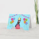 O cão doberman com bolo e balões é um cartão de aniversário perfeito para alguém que ama esta raça.