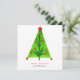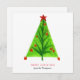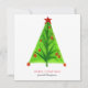 Estilo contemporâneo com esta design minimalista de uma ilustração de árvore de Natal verde-brilhante artística com ornamentos vermelhos num fundo branco e tipografia que você pode facilmente personalizar na frente e atrás.