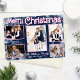 Fundo azul marinho com detalhes em rosa e flocos de neve brancos caprichosos tornam este cartão de Natal único nesta época. Preencha este cartão com 5 fotos para enviar para familiares e amigos nesta época de Natal. A escrita é em branco com detalhes em rosa para personalizar com o nome da sua família, primeiros nomes e o ano.