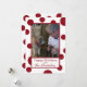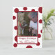 Um design alegre e festivo em vermelho e branco tradicionais com pontos vermelhos sobre fundo branco. A frente tem um ponto para uma foto sobre um fundo de pontos vermelhos e brancos. Uma caixa branca perto do fundo contém sua mensagem de feriado em uma tipografia contemporânea. Seu nome está na tipografia de script. Todas as palavras são da mesma cor vermelha das listras. A parte de trás é branca com pontos vermelhos para completar a aparência. Um olhar moderno para os seus cartões de cartões de natal.