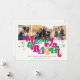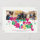 Estes cartões de cartões de natal de fotos giros de 7" x 5" apresentam a saudação retrorreflectora brilhante e colorida, "Feliz e Brilho", em magenta, verde, amarelo e azul, com espaços reservados para três de suas fotos favoritas.