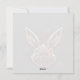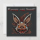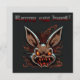 Esta Páscoa é preferencialmente esquisita e humorística, com um coelho zumbi que parece ter saído hetero de um filme de terror. Ele tem olhos amarelos e uma risada diabólica. O fundo da carta é uma cor escura, o que reforça a atmosfera assustadora da cena. Acima do coelho, a frase "Caçada Feliz de Ovo" é escrita em letras maiúsculas, com uma fonte divertida de preferencialmente. Apesar do lado ligeiramente mórbido do coelho, a mensagem ainda é divertida e lembra o espírito da tradicional caça aos ovos de Páscoa.