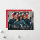 Este cartão com fotos encantador com sua foto, as palavras "Feliz Natal!", em uma fonte moderna em branco e seu nome de família, e o ano em uma fonte clara em branco na frente e uma bolinhas vermelha e branca coordenada de volta trará um sorriso para a face de cada receptor. Todos vão gostar de ter uma nova foto sua e da sua família ou dos seus filhos. Para tornar este cartão seu, basta selecionar Personalizar este modelo, carregar uma foto favorita, adicionar seu nome de família e o ano. É super fácil!