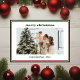 Este simples cartão vermelho e verde, com sua foto favorita no centro, e as palavras "Feliz Natal" em uma fonte moderna em verde acima da foto e do seu nome de família e o ano em uma fonte limpa e nítida em BONÉ verde abaixo da foto é perfeito para enviar aos seus amigos e familiares. É um design mínimo e clássico que certamente trará sorrisos aos rostos de cada receptor. A parte de trás é verde correspondente.