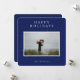 As estrelas brancas elegantes e simples no azul-céu noturno, cartão com fotos "Felizes Feriados".
