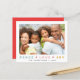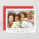 Um cartões de natal de Natal amigável para espalhar alguma alegria e amar esta temporada de festas que mostra sua foto favorita de família, "Paz", "Amor" e "Alegria" em cores tênues, cor-de-rosa e douradas, com cada palavra separada por um coração vermelho. Na parte inferior você pode adicionar seu nome de família e ano.
