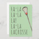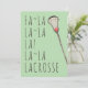 Cartão de saudação de Natal Lacrosse com design de lax stick e as engraçadas linhas originais "Fa La Lacrosse" e "Feliz Lax-mas". Editar texto para personalizar facilmente.