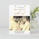Cartão de Natal personalizado e tudo em um e anúncio de nascimento. Este design chic e na moda, em preto e ouro, está pronto para você adicionar sua foto e saudação personalizada. O texto diz "Trocamos nossas noites silenciosas por um pacote de alegria" em letras divertidas e brilhantes e na tipografia moderna do estilo da luz LED. É decorada com estrelas pretas e douradas na frente, enquanto as costas são pretas e douradas com flocos de neve e corações. A foto tem um filtro de sepia - as instruções são fornecidas se você quiser limpá-lo (ou trocá-lo por outro filtro). Procure designs de alternativo na nossa loja.