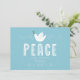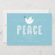 Este cartão de feriado não fotográfico ilustra uma pomba sobre a palavra paz num fundo azul claro. Tem espaço para uma saudação, seu nome e o ano.