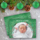 Uma coroa de galhos de pinheiros, bagas e folhas em um fundo de cordularia verde rodeia sua foto favorita com sua saudação em letras quentes na frente e sua personalização e mensagem nas costas. Selecione Matte para o papel mais pesado e alta definição para melhor qualidade de impressão. *Use uma foto horizontal.
