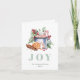 Esta aconchegante carta de férias apresenta uma ilustração aquosa das tradicionais guloseimas de Natal, incluindo uma caneca de chocolate quente ou cacau com marshmallow, uma cana doce, uma laranja, um monte de gemas de canela, e um biscoito em forma de estrela fosco, decorado com folhas e bagas sagradas. A palavra "JOY" aparece em letras grandes, azuis-esverdeadas, pálidas, que se coordenam com o verde. Adicione o nome da sua família e o ano na frente e uma mensagem do seu dentro em itálico de cinzas de carvão. Um padrão que apresenta algumas das mesmas curvas de feriado aparece dentro em frente ao texto.