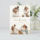 Cartão de Natal Moderno, Minimalista, Elegante, "Feliz Natal", 4 Colagem de Fotos, em branco dourado. Este cartão festivo, claro e minimalista, quatro (4) fotos da família apresenta uma bonito colagem fotográfica em grade e diz "Feliz Natal"! O script de texto de saudação de "Natal" é escrito em um tipo de fonte de texto de balanço suave e suave. Na parte de trás, uma foto e sua mensagem. Bonito cartão de boas-vindas para sua família e amigos na temporada de festas de inverno.