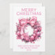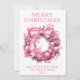 Pink Wreath para o cartão de Natal em azul para um Cartões de natal festivo para familiares e amigos.