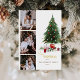 Cartão de Natal bonito com quatro fotos da família. Ilustração em aquarelas Árvores de Natal em cores moles de uma bela árvore de Natal festiva, com decorações de Natal cercadas por presentes e em antecipação ao feriado. Elementos de decoração e criar uma atmosfera de férias. Feliz cartão de Natal de Natal. Em verduras clássicas, castanhos e vermelho.