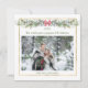 Cartão plano de Natal com sua foto. Esta design apresenta um quadro retangular de efeito ouro com folhagem verde de inverno e bagas vermelhas.