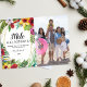 Cartões de natal Mele Kalikimaka com fundo branco-quic que pode ser mudado para qualquer cor, um retrato familiar, brilho dourado, design de borda geométrica, flores tropicais de aquarela, folhas de palma, cartões de natal, seu nome e ano.