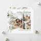 O moderno cartão de natal fotográfico apresenta saudações de Paz, Amor e Alegria com bagas e folhas de fotografia e botânica.