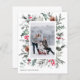 Orçamento Elegante Feliz Natal Adicione seu próprio cartão de feriado fotográfico com Holly Berries e Greenery na frente e adicione uma segunda foto na parte de trás. É o cartão de férias perfeito para enviar para a família e amigos.