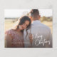 Budget Merry Christmas Script Simple Photo Holiday Card apresenta cartazes desenhados à mão modernas com foto na frente. Clique no botão personalizar/editar para personalizar este design com suas fotos e detalhes.