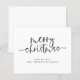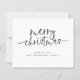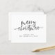Cartão de Férias de Natal Merry-Minimalista. Um preço orçamentário Cartão simples MAIS PEQUENO de 4,5" x 5,6" para as suas saudações festivas em um estoque de cartão SEMI GLOSS 110 lb brilhante (semelhante à espessura de um cartão postal). OBSERVE: O envelope fornecido com este cartão é ligeiramente maior que o próprio cartão. Estilo contemporâneo com muito espaço em branco, Feliz Natal está em um roteiro elegante em preto e o resto do texto que você pode personalizar facilmente. As cores do texto e do plano de fundo podem ser alteradas se você desejar por meio da opção personalizar mais.