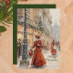 Volte a tempo para um Natal vitoriano! Este belo cartão de férias apresenta uma ilustração encantadora de aquarela de uma cena de rua festiva, cheia de figuras elegantemente vestidas rolando compras passadas adornada com glândulas e luzes brilhantes, tudo sob uma queda de neve suave. O clássico personalizável "Feliz Natal" na frente adiciona um toque de eterno. Um fundo verde sólido e um texto personalizável ao contrário, onde você pode adicionar seu nome de família ou uma mensagem sincera para criar um cartões de natal verdadeiramente único. Perfeito por enviar saudações sofisticadas e nostálgicas da época!