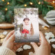 Envie desejos de férias calorosos com este Cartões de foto de Natal moderno e sereno, com um retrato de inverno de cheio sangrado e uma elegante tipografia branca. Perfeito para mostrar sua foto sazonal favorita, esta design minimalista inclui seu nome de família e ano na frente, com uma mensagem personalizável no verso. Uma maneira simples e na moda para celebrar a temporada com amigos e familiares.