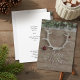 Mande desejos calorosos com nossos belos cartões de natal de veados. Perfeito para um Natal confortável e rústico. Martelos festivos adorados com enfeites de natal sobre um fundo de madeira rústica com pivete atrás. Basta adicionar seu nome, endereço e cartões de natal da família.